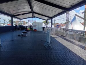 A estrutura prevê rampa com declividade suave, banheiros químicos acessíveis, segurança exclusiva, controle de acesso e supervisão técnica permanente. Elevado a mais de dois metros do solo, garante visão livre dos trios elétricos.