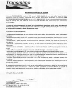 Um ponto que chamou atenção foi o atestado de capacidade técnica emitido pela Transmimo em favor da Safre, afirmando que a empresa teria frota de 30 veículos, sistema de monitoramento e uso de inteligência artificial — estrutura que, segundo registros, a Safre ainda não comprova possuir.