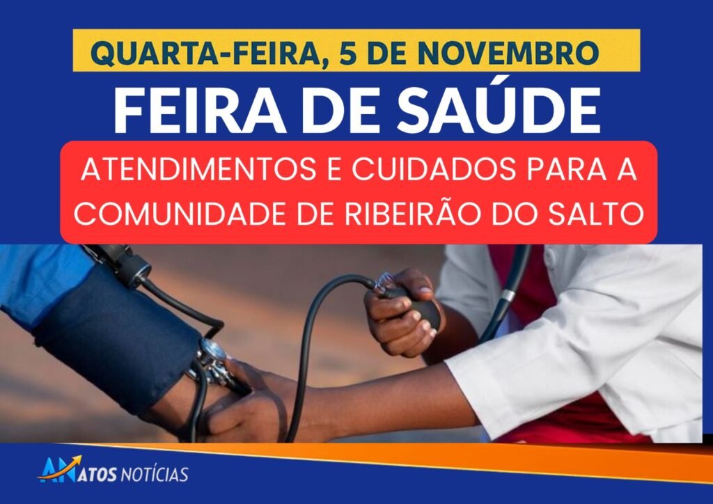**Feira de Saúde levará atendimentos e cuidados para a comunidade de Ribeirão do Salto** Amanhã, **quarta-feira, 5 de novembro**, a comunidade de **Ribeirão do Salto**