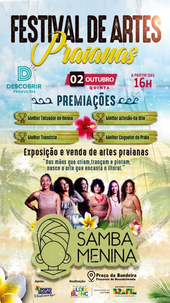 Com o lema “Das mãos que criam, trançam e pintam, nasce a arte que encanta o litoral”, o festival reforça a importância da produção artística como patrimônio cultural e atrativo turístico. A iniciativa é viabilizada pelo edital da lei Aldir Blanc de Porto Seguro, por meio da pasta do Turismo e Superintendência de Cultura, fortalecendo a economia criativa e a valorização da arte local.