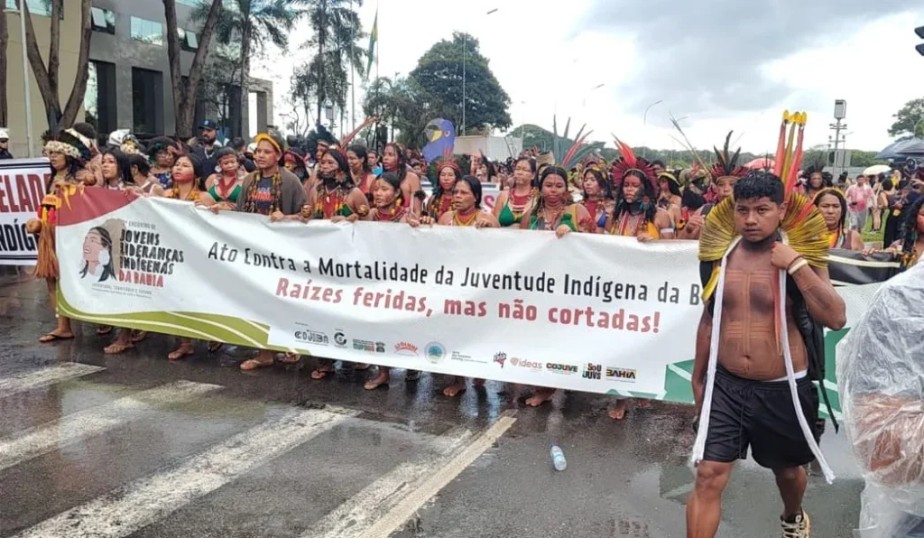 Um dos principais pontos em debate é a tese do marco temporal, que estabelece critérios para demarcação de terras com base na ocupação em 1988. Na marcha, os povos originários também cobraram o governo Lula (PT), pela aprovação urgente da proposta.