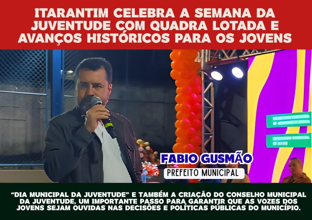 Parabéns à gestão municipal pela sensibilidade e empenho em fortalecer políticas voltadas aos jovens, e parabéns à juventude itarantiense por mostrar que é protagonista de um novo tempo — de ideias, participação e esperança.