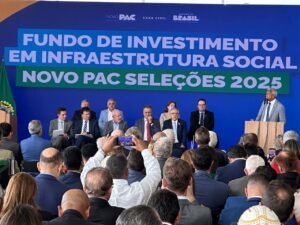 O prefeito Fábio Gusmão participou do evento institucional que apresentou ao país os eixos prioritários de investimentos em saúde, educação e saneamento previstos pelo FIIS e pelo Novo PAC Seleções 2025 — um programa considerado estratégico para os municípios brasileiros que buscam ampliar e modernizar sua infraestrutura social.