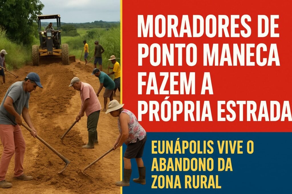 Eunápolis (BA) — Cansados de esperar por ações da Prefeitura, moradores da comunidade rural de Ponto Maneca, em Eunápolis, decidiram se unir para fazer com as próprias mãos o que o poder público deveria ter feito há muito tempo: arrumar a estrada que dá acesso à localidade.