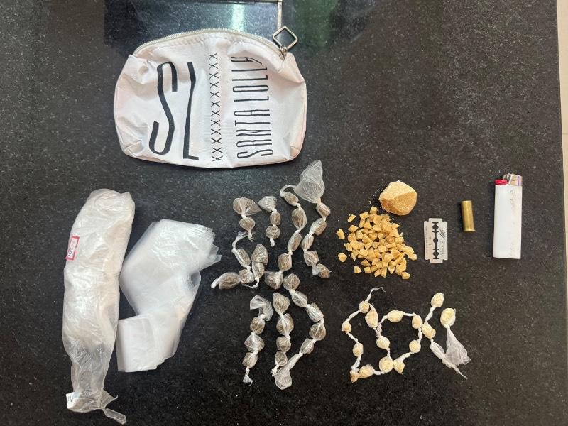 Na área onde os suspeitos correram, os policiais localizaram uma bolsa contendo porções de crack e maconha, além de materiais utilizados para embalagem.