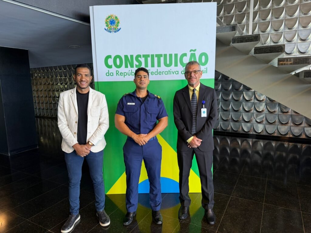 O secretário municipal da Casa Civil de Porto Seguro, Josemar Siquara, acompanhado do comandante-geral da Guarda Municipal, Marco de Jesus Pereira, e do secretário municipal de Assistência Social, Washington Borges, participou nesta quarta-feira, 22, em Brasília, do lançamento do Programa Município Mais Seguro, promovido pelo Ministério da Justiça e Segurança Pública (MJSP).