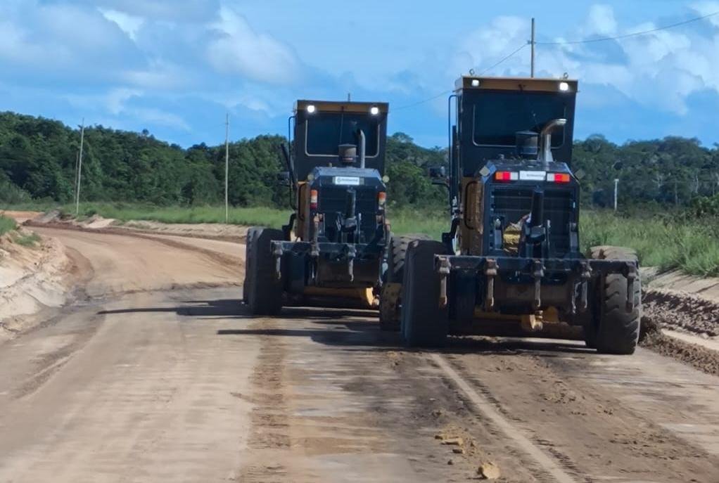 Nesta semana, os trabalhos estão sendo realizados na estrada dos Búfalos, com o levantamento do greide e patrolamento da pista.