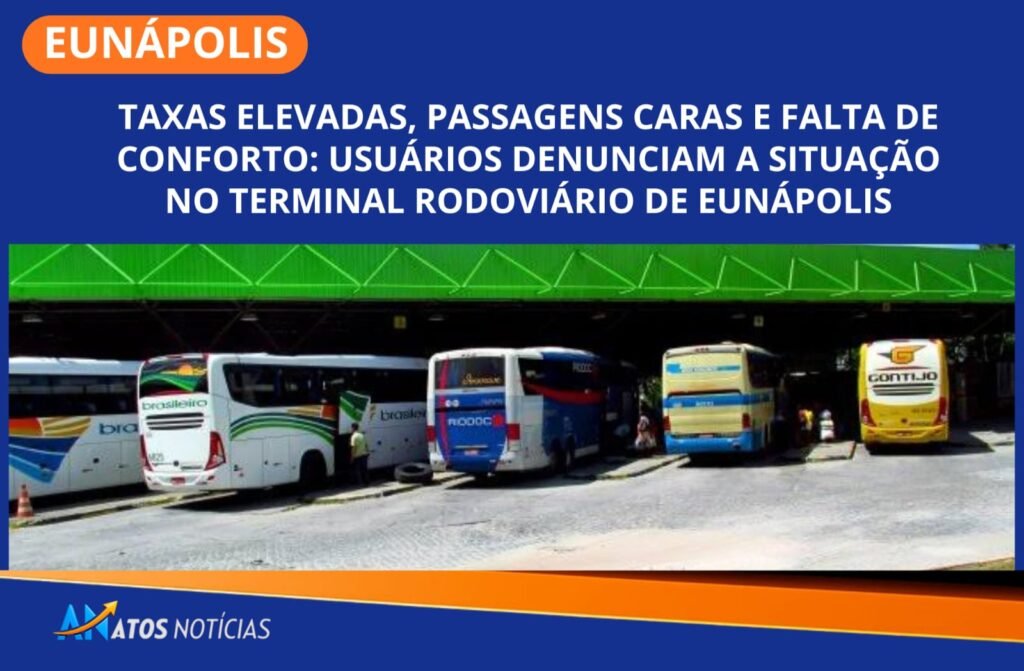 No terminal rodoviário de Eunápolis, passageiros relatam uma série de problemas que afetam o dia a dia de quem depende do transporte público local: cobrança de taxas aparentemente excessivas, valores altos de passagens e banheiros pagos, enquanto a estrutura do terminal apresenta condições aquém do esperado para um serviço público de qualidade.