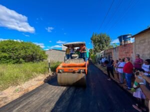 Esse serviço – que é realizado com asfalto CBUQ (Concreto Betuminoso Usinado a Quente), de alta qualidade – é um passo significativo para melhorar as condições de vida dos moradores locais.